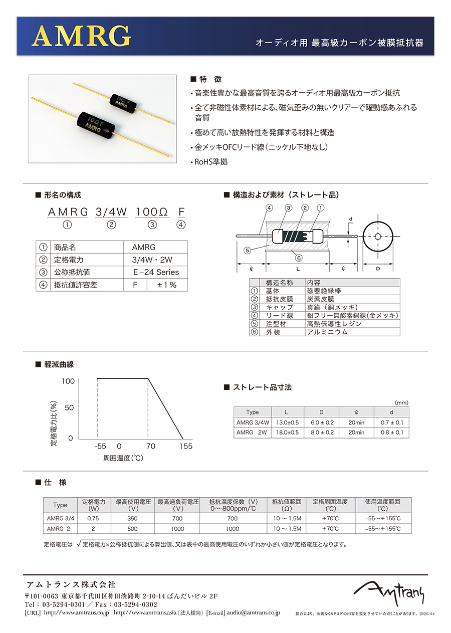 最高級オーディオ用炭素被膜(カーボン)抵抗器 AMRG