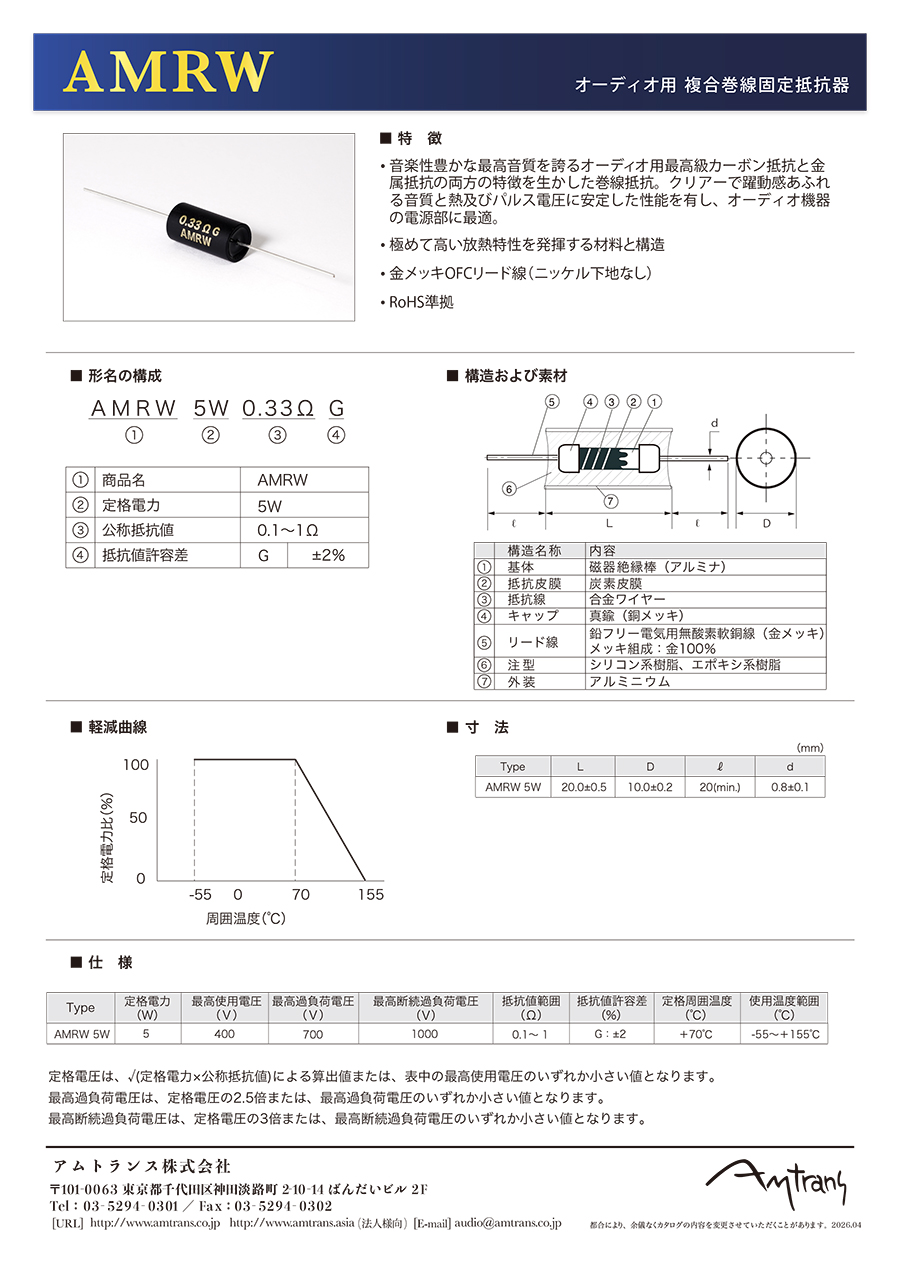巻線と炭素被膜の複合抵抗器 AMRW