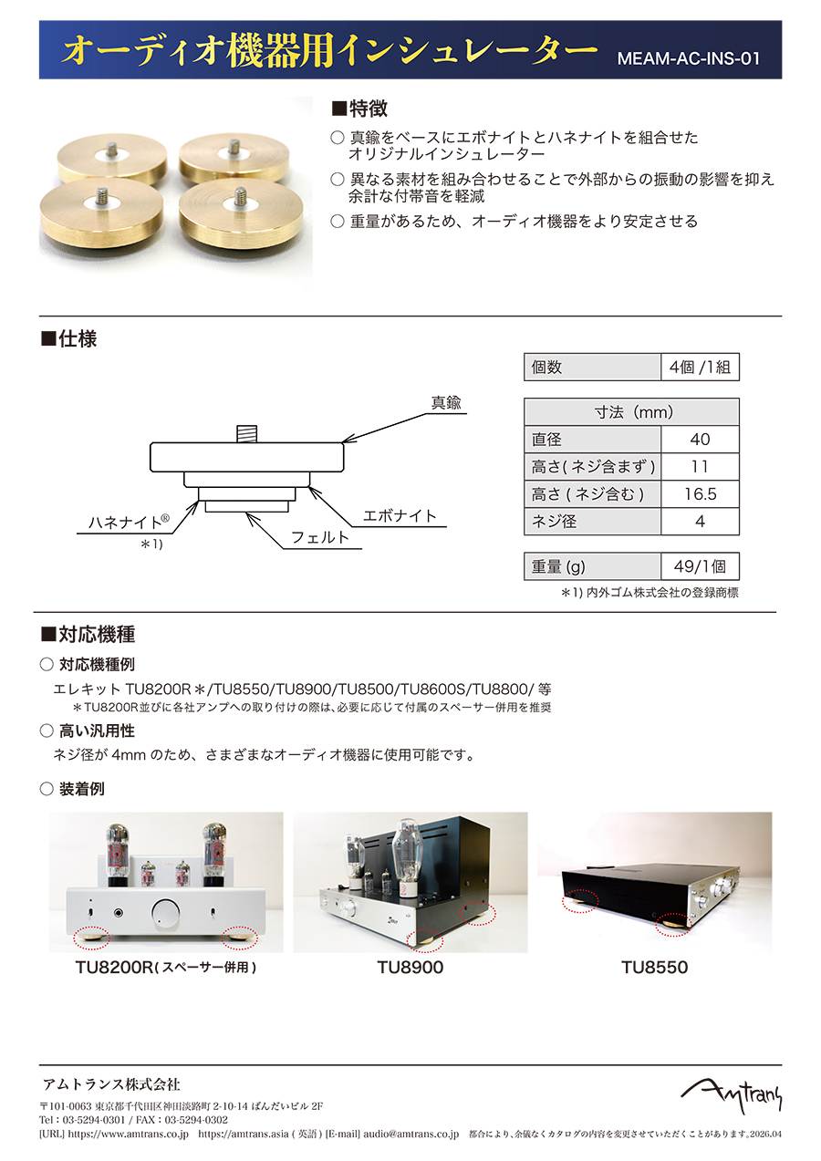 ◇ 真鍮をベースにエボナイトとハネナイトを組合せたオリジナルインシュレーター